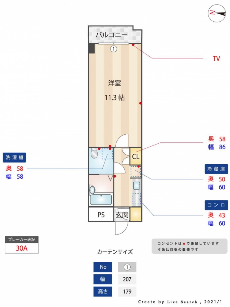 間取り | 1K | 面積 | 30 ㎡ |
