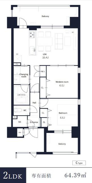 | 間取り | 2LDK | 面積 | 64.36 ㎡ |